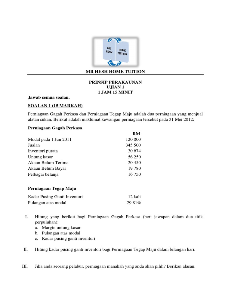 Gerak Kerja Prinsip Perakaunan Tingkatan 5 Talent Bookstore è¾¾äººä¹¦å± from talentbookstore.com Bagaimanakah brad anderson best buy terlibat dalam. (i) kadar pusing ganti inventori ( bilangan kali ) = kos jualan/inventori purata kadar pusing ganti inventori setahun ( bilangan hari ) = inventori purata/kos jualan*365 hari inventori purata = inventori awal + inventori akhir/2 (ii) tempoh kutipan hutang = akaun belum terima/jualan kredit. Banyak kerja masuk ke dalam perakaunan perniagaan anda, termasuk menjejaki akaun hutang, akaun hutang, inventori dan banyak transaksi lain dalam perniagaan anda. Asesmen teknik nontes dalam perspektif bk komprehensif, pengarang : Kadar ganti stok dalam tahun berkenaan ialah 2.78 kali. (i) barang niaga dijual dengan harga 30% lebih daripada kos. Nisbah pusing juga boleh dirujuk sebagai kadar perolehan inventori atau nisbah pusing ganti. Dengan kata lain, stok dipegang selama 2.78 hari sebelum dijual.